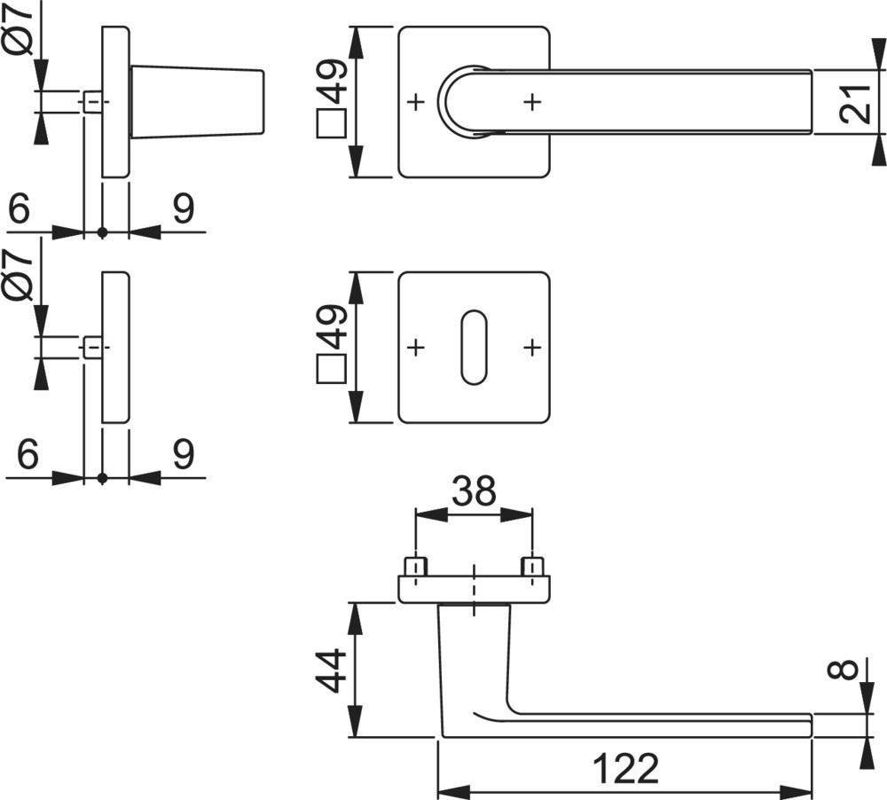 | Höhe Drückerrosette (innen): | 9.00 MMT |