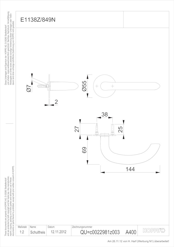 Produktinformationen "HOPPE Drückergarnitur Marseille E1138Z/849N,8,F69,TS 35-45"