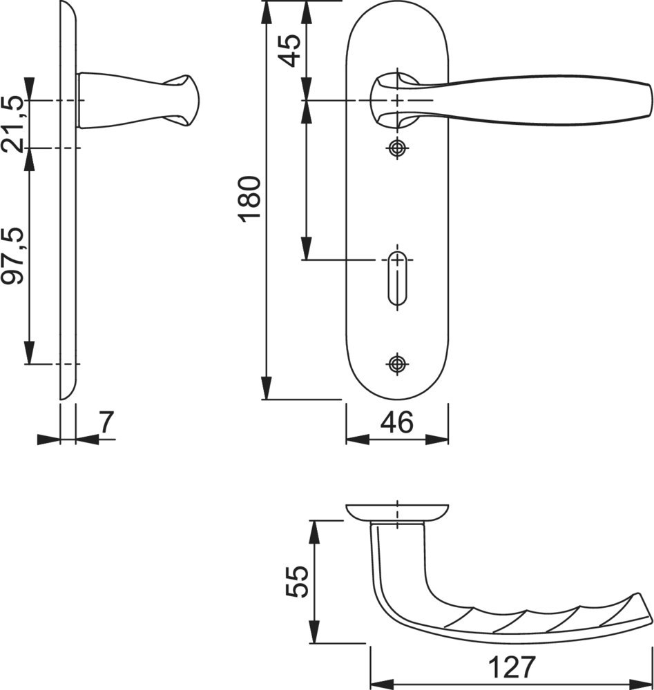 Drückergarnitur New York 1810/273KP; Produkttyp: Drückergarnitur; Produkttyp (Hersteller): Drückergarnitur; Ausführung: Kurzschild; Befestigungsart: sichtbar verschraubt; Befestigungstechnik: ohne Stütznocken; Form: oval; Vierkant: 8 mm; Material: Aluminium; Form Türgriff (innen): gebogen; Form Türgriff (außen): gebogen; Länge Türgriff (innen): 127 mm; Länge Türgriff (außen): 127 mm; Höhe Türgriff (innen): 55 mm; Höhe Türgriff (außen): 55 mm; Schildbreite außen: 46 mm; Schildbreite innen: 46 mm; Schildlänge außen: 180 mm; Schildlänge innen: 180 mm; Schildstärke außen: 7 mm; Schildstärke innen: 7 mm; Lagerung: mit Rückholfeder,wartungsfreies Gleitlager; Einsatzbereich: Objekttür; Türart: Vollblatt; Türwerkstoff: Holz,Stahl; Norm: DIN EN 1906; Lochung: Buntbart gelocht; Entfernung: 72 mm; DIN-Richtung: DIN Links-Rechts; Farbe: silber; Farbton: naturfarben; Oberfläche: eloxiert; Ausführung Vierkant: Vierkantstift; Türstärke: 42 mm; Türstärke min.: 37 mm; Türstärke max.: 42 mm; EN 1906 - Gebrauchskategorie: Klasse 3; EN 1906 - Korrosionsbeständigkeit: Klasse 4; Klassifizierungsschlüssel EN 1906: 37-0140U