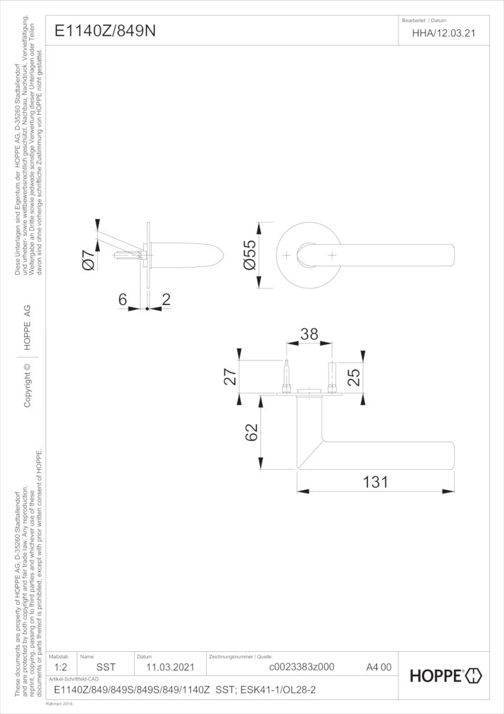 Produktinformationen "HOPPE Drückergarnitur ohne Schlüsselrosette Marseille E1138Z/849N, Edelstahl"