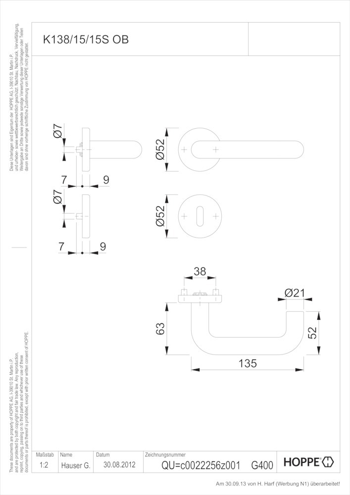 | Durchmesser Türgriff (außen): | 21.00 MMT |