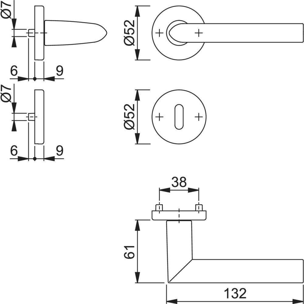 | Höhe Drückerrosette (innen): | 9.00 MMT |