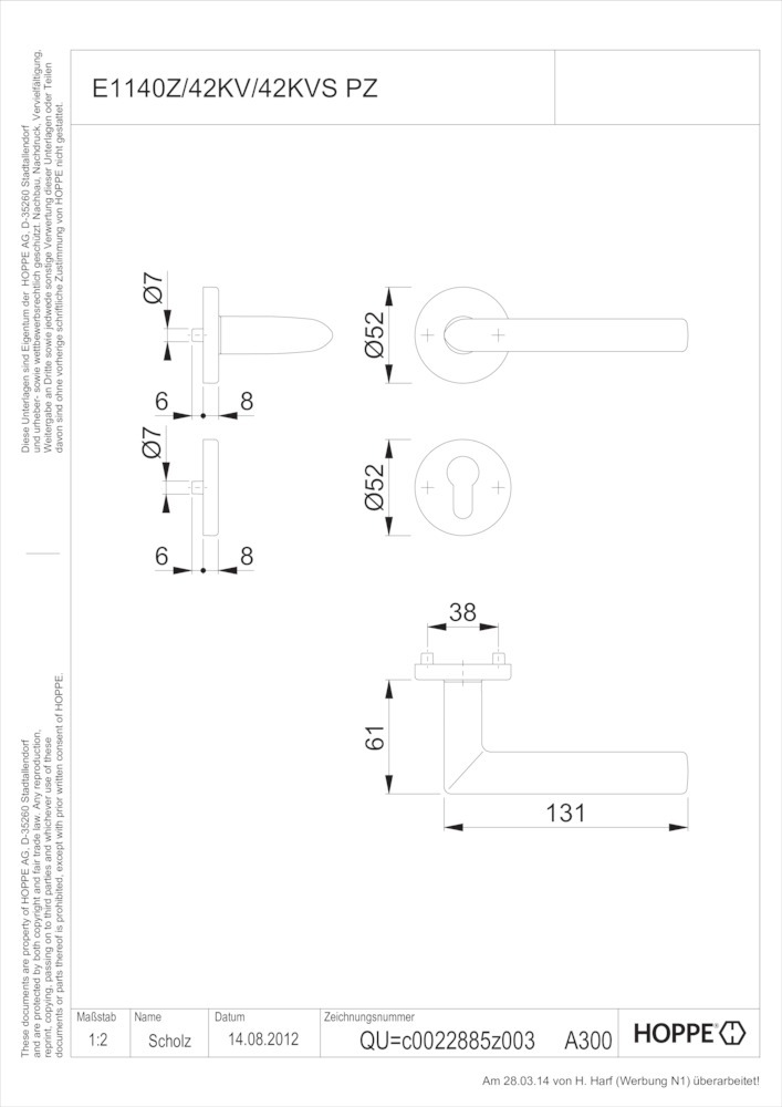 | Höhe Schlüsselrosette (außen): | 8.00 MMT |