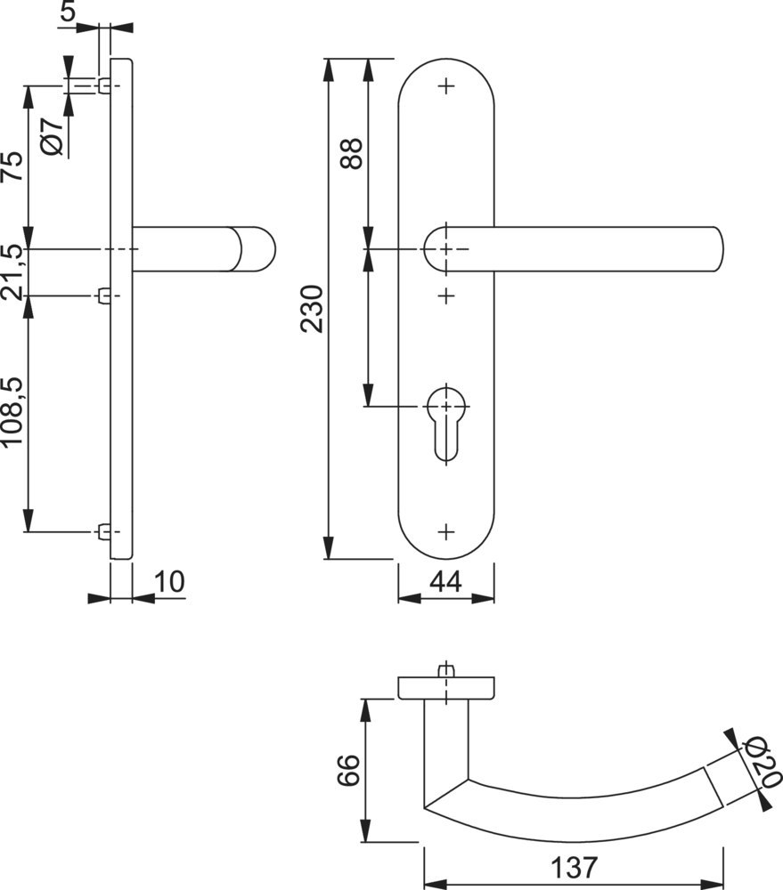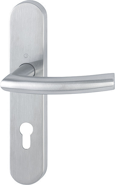 Drückergarnitur Trondheim E1430/353H; Produkttyp: Drückergarnitur; Produkttyp (Hersteller): Drückergarnitur; Ausführung: Langschild; Befestigungsart: verdeckt verschraubt; Befestigungstechnik: mit Stütznocken; Form: oval; Vierkant: 8 mm; Material: Edelstahl; Material Unterkonstruktion: Stahl; Form Türgriff (innen): Gehrung,gebogen; Form Türgriff (außen): gebogen,Gehrung; Durchmesser Türgriff (innen): 20 mm; Durchmesser Türgriff (außen): 20 mm; Länge Türgriff (innen): 137 mm; Länge Türgriff (außen): 137 mm; Höhe Türgriff (innen): 66 mm; Höhe Türgriff (außen): 66 mm; Schildbreite außen: 44 mm; Schildbreite innen: 44 mm; Schildlänge außen: 230 mm; Schildlänge innen: 230 mm; Schildstärke außen: 10 mm; Schildstärke innen: 10 mm; Lagerung: mit Rückholfeder,festdrehbar,wartungsfreies Gleitlager; Einsatzbereich: Objekttür; Türart: Vollblatt; Türwerkstoff: Holz,Stahl; Norm: DIN EN 1906; Lochung: Profilzylinder gelocht; Entfernung: 72 mm; DIN-Richtung: DIN Links-Rechts; Farbe: grau; Farbton: edelstahl matt; Ausführung Vierkant: Profilstift; Türstärke min.: 40 mm; Türstärke max.: 45 mm; EN 1906 - Gebrauchskategorie: Klasse 4; EN 1906 - Korrosionsbeständigkeit: Klasse 5; Klassifizierungsschlüssel EN 1906: 47*-0150A