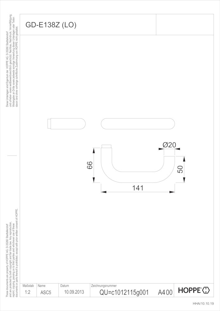 HOPPE Drückerpaar Paris GD-E138Z, 8mm, L 66, TS 35-45,edelstahl matt