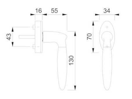 Der Fenstergriff wird mit einem Vierkantstift von 7 mm Stärke und einem Nockendurchmesser von 10 mm ausgeliefert.
