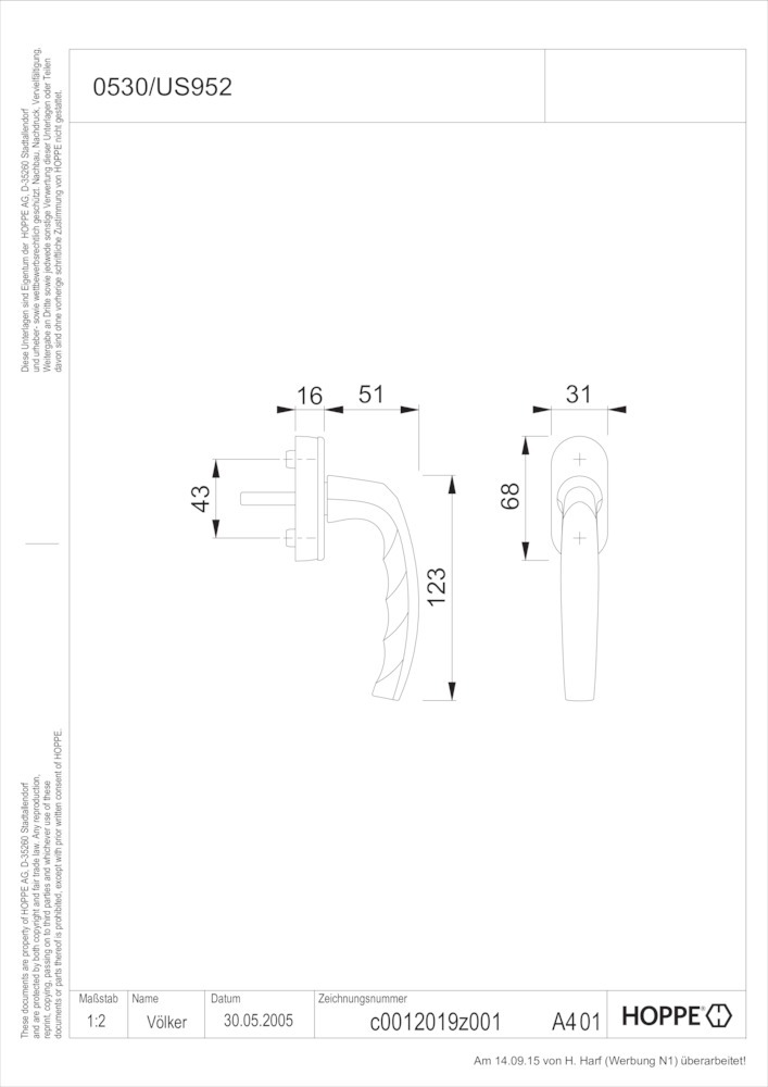 Produktinformationen "HOPPE Fenstergriff Atlanta 0530/US952, Standard, oval,7/32-42,"