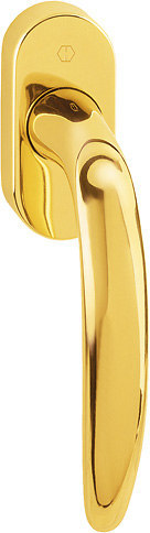 Fenstergriff Atlanta M0530/US956; Produkttyp: Fenstergriff; Produkttyp (Hersteller): Fenstergriff; Ausführung: Standard; Rastung: 90°; Stütznocken: mit Stütznocken; Verriegelungsart: mit selbsttätiger Verriegelung; Material: Messing; Montageart: aufliegend; Befestigungsart: verdeckt verschraubt; Technik: Secustik®,VarioFit®; Anwendung: für nach innen öffnende Fenster und Fenstertüren; Länge: 122 mm; Höhe: 58 mm; Befestigungsabstand: 43 mm; Form Rosette: oval; Breite Rosette: 33 mm; Höhe Rosette: 72 mm; Stärke Rosette: 16 mm; Material Unterkonstruktion: Kunststoff; Durchmesser Stütznocken: 10 mm; Norm: DIN EN 13126-3; Gütesiegel: RAL-GZ 607/9; Einsatzbereich: Drehkipp; Fensterwerkstoff: Holz,Kunststoff,Aluminium; Vierkant: 7 mm; Stift vorstehend: 32-42 mm; DIN-Richtung: DIN Links-Rechts; Farbe: gelb; Farbton: messingfarben poliert-Resista; Aufdruck: mit Logo