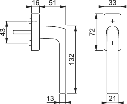 HOPPE®, Drehkipp-Fenstergriff, Modell: Dallas, Modellnummer: E0643/US944, Aufdruck: mit Logo, Vierkant: 7 mm, DIN-Richtung: DIN Links-Rechts, Material: Edelstahl, Farbton: edelstahl matt, Stift vorstehend: 20-30 mm, Nockendurchmesser: 10 mm, Befestigungstechnik: mit Stütznocken, Befestigungsart: verdeckt verschraubt, Befestigungsabstand: 43 mm, Ausführung: VarioFit®, Sockelausführung: mit eckiger Rosette,Material Unterkonstruktion : Kunststoff, Griffform: Gehrung, Grifflänge: 132 mm, Griffbreite: 21 mm, Sockelausführung: mit eckiger Rosette, Sockelbreite: 33 mm, Sockelhöhe: 72 mm, Sockelstärke: 16 mm, Rastung: 90°, Technik: Secustik®, Funktion: mit selbsttätiger Verriegelung, Norm: DIN EN 13126-3, Fensterwerkstoff: Holz, Aluminium, Kunststoff, Anwendung: für nach innen öffnende Fenster und Fenstertüren, Prüfung: RAL-GZ 607/9, Lieferung: mit Schrauben, mit Vierkantstift, Zusatzinformation: integrierte Basis-Sicherheit