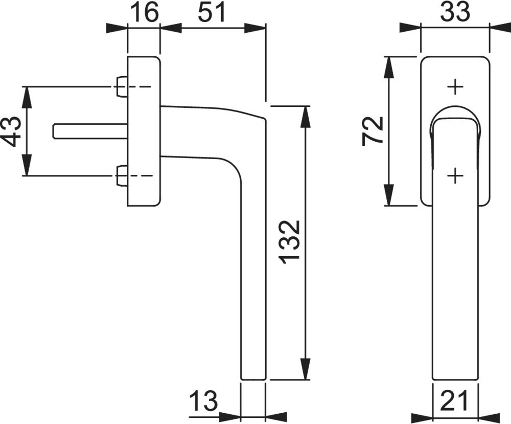 Fenstergriff Dallas E0643/US944; Produkttyp: Fenstergriff; Produkttyp (Hersteller): Fenstergriff; Ausführung: Standard; Rastung: 90°; Stütznocken: mit Stütznocken; Verriegelungsart: mit selbsttätiger Verriegelung; Material: Edelstahl; Montageart: aufliegend; Befestigungsart: verdeckt verschraubt; Technik: Secustik®,VarioFit®; Anwendung: für nach innen öffnende Fenster und Fenstertüren; Länge: 132 mm; Breite: 21 mm; Höhe: 51 mm; Befestigungsabstand: 43 mm; Form Rosette: eckig; Breite Rosette: 33 mm; Höhe Rosette: 72 mm; Stärke Rosette: 16 mm; Material Unterkonstruktion: Kunststoff; Durchmesser Stütznocken: 10 mm; Norm: DIN EN 13126-3; Gütesiegel: RAL-GZ 607/9; Einsatzbereich: Drehkipp; Fensterwerkstoff: Holz,Kunststoff,Aluminium; Vierkant: 7 mm; Stift vorstehend: 32-42 mm; DIN-Richtung: DIN Links-Rechts; Farbe: grau; Farbton: edelstahl matt; Aufdruck: mit Logo