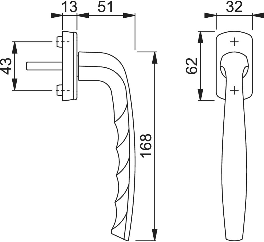 Fenstergriff New York PSK-0810/U10; Produkttyp: Fenstergriff; Produkttyp (Hersteller): Fenstergriff; Ausführung: Standard; Rastung: 90°; Stütznocken: mit Stütznocken; Material: Aluminium; Montageart: aufliegend; Befestigungsart: verdeckt verschraubt; Anwendung: für nach innen öffnende Fenster und Fenstertüren; Länge: 168 mm; Höhe: 51 mm; Befestigungsabstand: 43 mm; Form Rosette: eckig; Breite Rosette: 32 mm; Höhe Rosette: 62 mm; Stärke Rosette: 13 mm; Material Unterkonstruktion: Kunststoff; Durchmesser Stütznocken: 10 mm; Gütesiegel: RAL-GZ 607/9; Einsatzbereich: Parallelschiebekipptür; Fensterwerkstoff: Holz,Kunststoff,Aluminium; Vierkant: 7 mm; Stift vorstehend: 35 mm; DIN-Richtung: DIN Links-Rechts; Farbe: weiß; Farbton: verkehrsweiß; Oberfläche: beschichtet