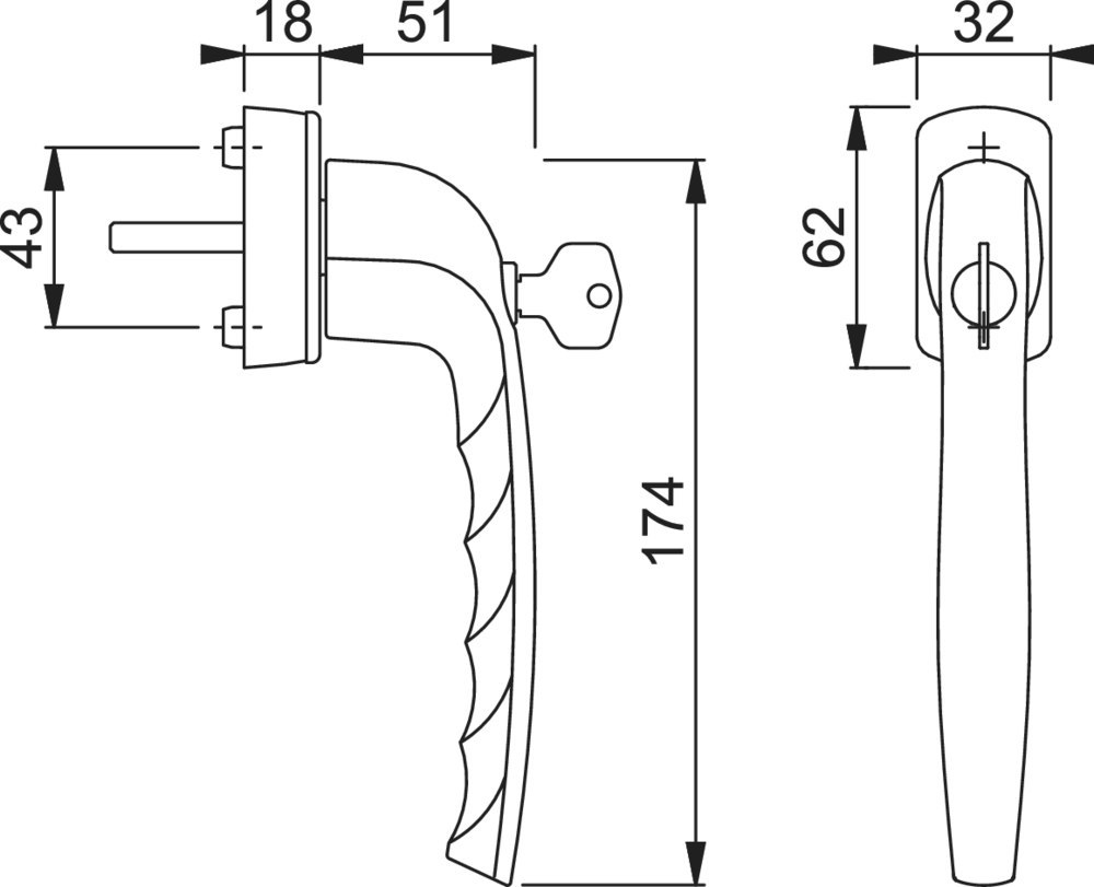 Produktinformationen "HOPPE Fenstergriff New York PSK-0810S/US10 100NM, abschließbar, eckig, 7/32-42,"
