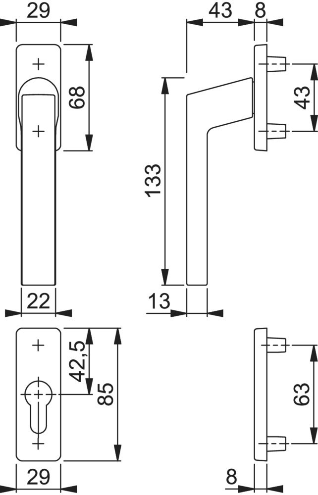 HOPPE Fenstertür-Halbgarnitur Austin 0769FA/51N/51NS, N 10, Profilzylinder gelocht