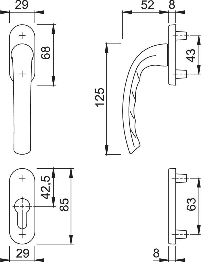 Produktinformationen "HOPPE Fenstertür-Halbgarnitur Tôkyô 0710RH/66N/66NS, N 10, Profilzylinder gelocht"