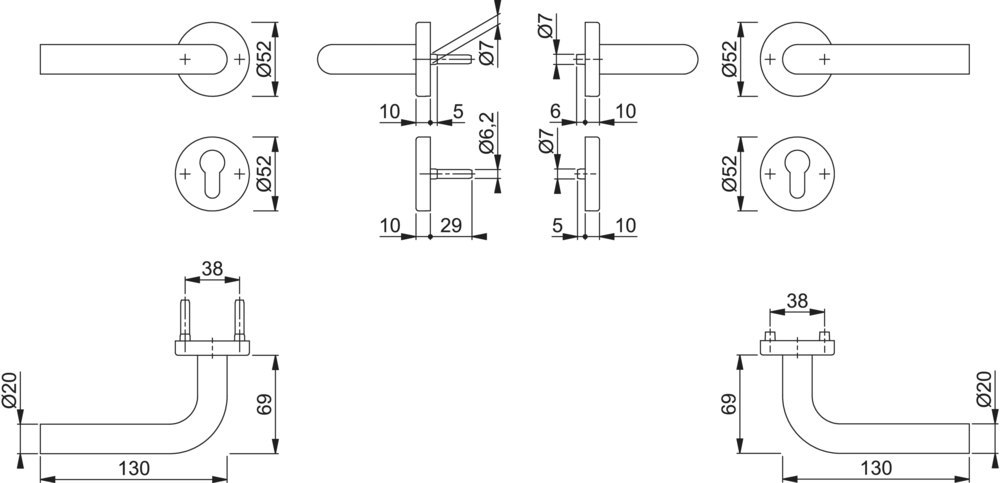 Höhe Schlüsselrosette (außen): 10.00 MMT