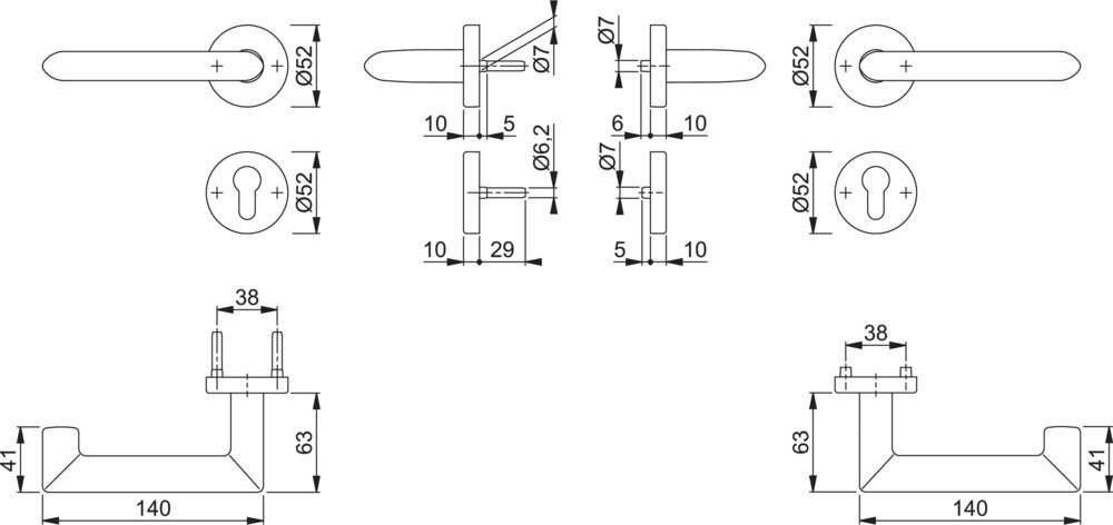 | Höhe Drückerrosette (außen): | 10.00 MMT |