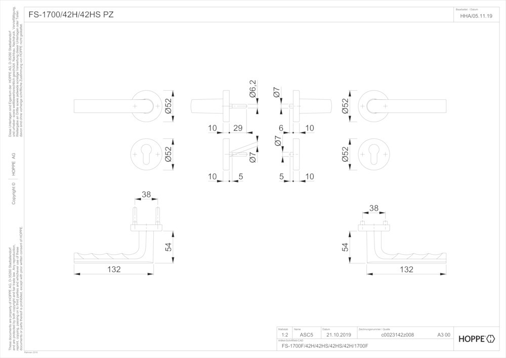 Produktinformationen "HOPPE FH-Drückergarnitur mit Rosetten Hamburg FS-1700/42H/42HS, Aluminium"