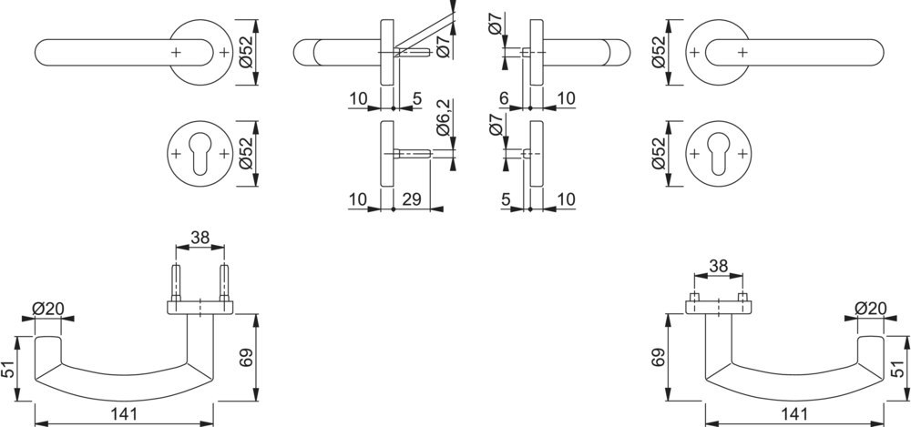 Höhe Schlüsselrosette (außen): 10.00 MMT