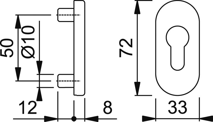 HOPPE®, Feuerhemmend-Schlüsselrosette, Lochung: Profilzylinder gelocht, Befestigungsart: verdeckt verschraubt, Modellnummer: FS-55S, Material: Aluminium, Farbton: naturfarbig, Oberfläche: eloxiert, Form: oval, DIN-Richtung: DIN Links-Rechts, Befestigungstechnik: mit Stütznocken, Länge: 72 mm, Breite: 33 mm, Stärke Abdeckung: 8 mm, Türart: Rahmentüren, Türwerkstoff: Aluminium, Kunststoff,Material Unterkonstruktion : Zamak, mit Stahleinlage, Norm: DIN 18273, Zulassung: für Feuerschutz, für Rauchschutz