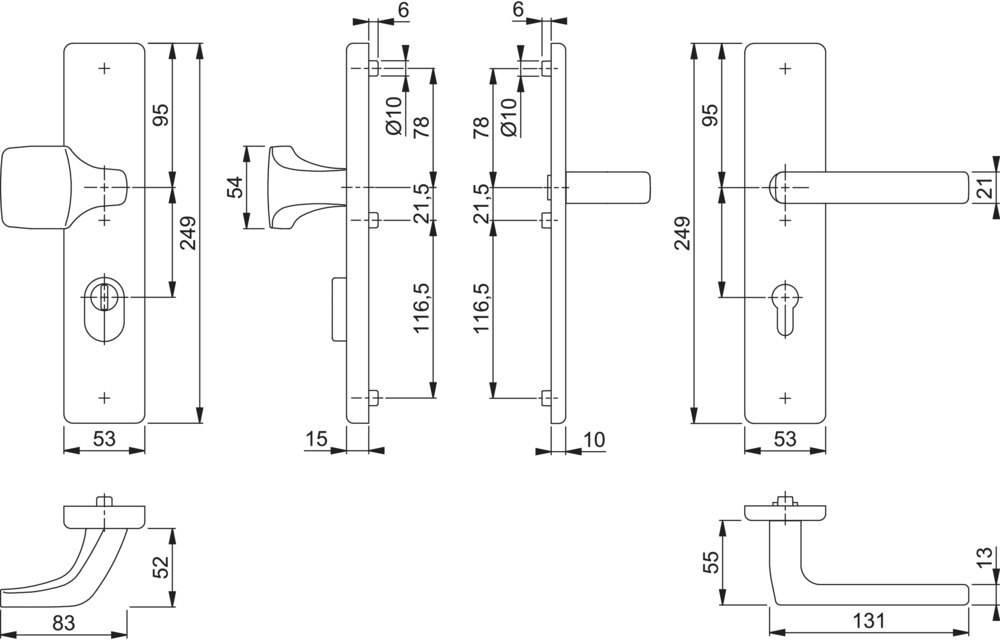 Produktinformationen "HOPPE Sicherheits-Wechselgarnitur Dallas FS-E61G/2222ZA/2210/1643F,LS eck.,15mm,ES1,ZA/PZ 72/9,F69,TS 42-47"