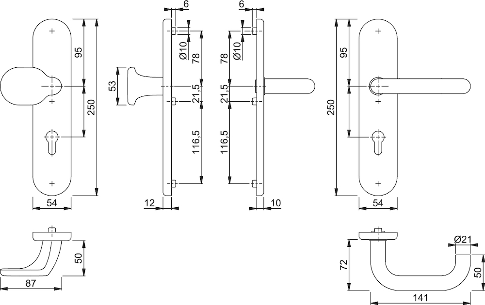 HOPPE®, Feuerhemmend-Schutz-Wechselgarnitur, Abdeckung: Langschild, Modell: Paris,Modellnummer: FS-86G/3331/3310/138F, Lochung: Profilzylinder gelocht, Entfernung: 72mm, Vierkant: 9mm, Material: Aluminium, Farbton: naturfarbig, Oberfläche: eloxiert, DIN-Richtung: DIN Links-Rechts, Lagerung: Gleitlager, wartungsfrei, festdrehbar, Befestigungsart: verdeckt verschraubt, Befestigungstechnik: mit Stütznocken, Material Unterkonstruktion außen: Stahl, Material Unterkonstruktion innen: Zamak/Stahl, Befestigungssystem: Stiftverbindung, Eigenschaft: Knopf fest auf Schild, Breite: 54mm, Länge: 250mm, Schildstärke außen: 12mm, Schildstärke innen: 10mm,Knopfform : gekröpft, Knopfbreite: 87mm, Knopfhöhe: 50mm, Anschlagrichtung: Drücker rechts/links verwendbar, Drückerbefestigung: Wechselstift mit Rolle, Drücker: mit Stahlkern,Drückerform : U-Form, Drückerdurchmesser: 21 mm, Drückerlänge: 141 mm, Drückerhöhe: 72 mm, Form: oval, Türstärke min.: 42mm, Türstärke max.: 47mm, Türart: Außentüren, Fluchttüren,Türwerkstoff : Holz, Aluminium, Stahl, Widerstandsklasse: ES 1 (SK2), Norm: DIN 18273, DIN 18257, DIN EN 1906, DIN EN 179, Zulassung: für Feuerschutz, für Rauchschutz, für Notausgänge