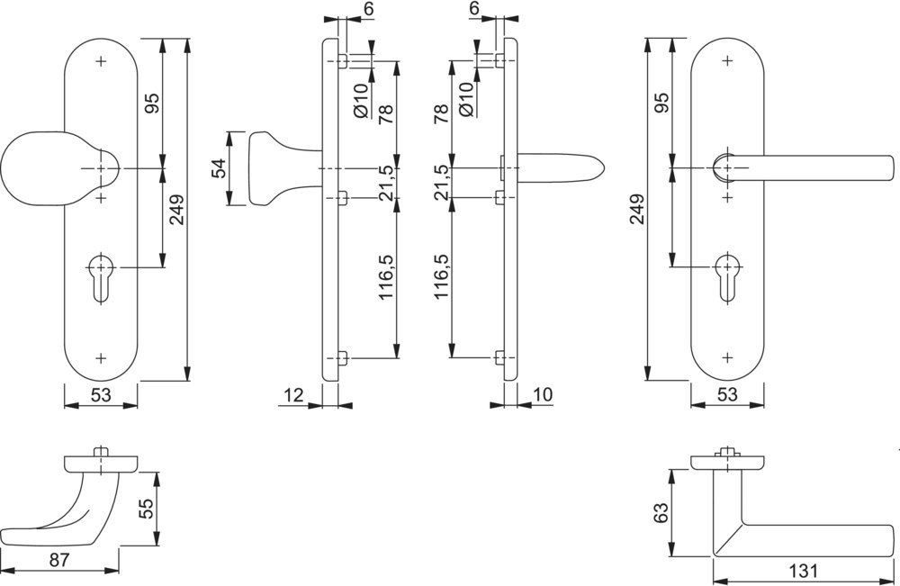 Produktinformationen "HOPPE Sicherheits-Wechselgarnitur Stockholm FS-E86G/3331/3310/1140F,LS ov.,12mm,ES1/PZ 72/9,F69,TS 42-47"