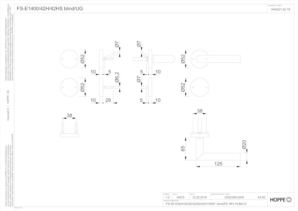 HOPPE Standflügelgarnitur Amsterdam FS-E1400/42H/42HS,BL/UG,9,F69,TS 40-65