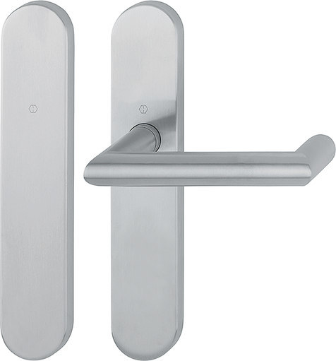 Standflügelgarnitur Rotterdam FS-E1401/353H; Produkttyp: Standflügelgarnitur; Produkttyp (Hersteller): Standflügelgarnitur; Ausführung: Langschild; Befestigungsart: verdeckt verschraubt; Befestigungstechnik: mit Stütznocken; Form: oval; Vierkant: 9 mm; Material: Edelstahl; Material Unterkonstruktion: Stahl; Form Türgriff (innen): U-Form,Gehrung; Durchmesser Türgriff (innen): 20 mm; Länge Türgriff (innen): 140 mm; Höhe Türgriff (innen): 65 mm; Schildbreite außen: 44 mm; Schildbreite innen: 44 mm; Schildlänge außen: 230 mm; Schildlänge innen: 230 mm; Schildstärke außen: 10 mm; Schildstärke innen: 10 mm; Lagerung: wartungsfreies Gleitlager; Einsatzbereich: Objekttür; Türart: Vollblatt; Türwerkstoff: Holz,Stahl; Norm: DIN 18273,DIN EN 179; Zulassung: für Rauchschutz,für Feuerschutz,für Fluchttüren; Lochung: Blind/ungelocht; DIN-Richtung: DIN Links-Rechts; Farbe: grau; Farbton: edelstahl matt; Ausführung Vierkant: Vierkantstift; Türstärke min.: 40 mm; Türstärke max.: 65 mm