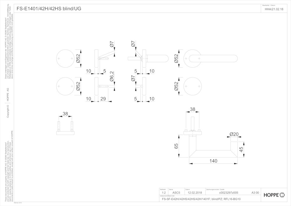 Produktinformationen "HOPPE Standflügelgarnitur Rotterdam FS-E1401/42H/42HS,BL/UG,9,F69,TS 40-65"