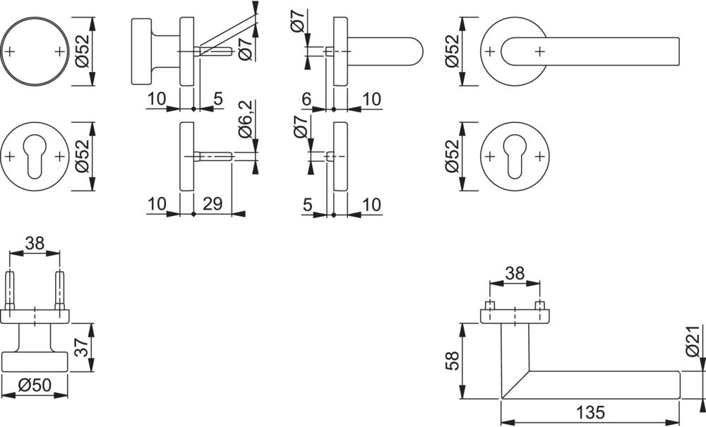 Höhe Schlüsselrosette (außen): 10.00 MMT