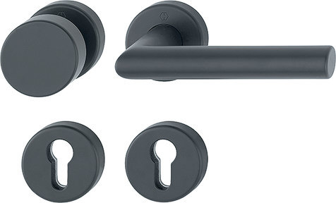 Wechselgarnitur Amsterdam FS-58/42H/42HS/1400; Produkttyp: Wechselgarnitur; Produkttyp (Hersteller): Wechselgarnitur; Ausführung: Rosette; Befestigungsart Drückerrosette (außen): verdeckt verschraubt; Befestigungsart Drückerrosette (innen): verdeckt verschraubt; Befestigungsart Schlüsselrosette (außen): verdeckt verschraubt; Befestigungsart Schlüsselrosette (innen): verdeckt verschraubt; Befestigungstechnik: mit Stütznocken; Montageart: aufliegend; Form Drückerrosette: rund; Form Schlüsselrosette (außen): rund; Form Schlüsselrosette (innen): rund; Vierkant: 9 mm; Material: Aluminium; Form Türgriff (innen): Gehrung; Ausführung Türgriff (innen): mit Stahlkern; Form Türgriff (außen): Flachknopf; Ausführung Türgriff (außen): fest; Gewinde Knopf/Griffplatte: M12; Durchmesser Türgriff (innen): 21 mm; Durchmesser Türgriff (außen): 50 mm; Durchmesser Schlüsselrosette: 52 mm; Länge Türgriff (innen): 135 mm; Höhe Türgriff (innen): 58 mm; Höhe Türgriff (außen): 37 mm; Durchmesser Drückerrosette (außen): 52 mm; Durchmesser Drückerrosette (innen): 52 mm; Höhe Drückerrosette (außen): 10 mm; Höhe Drückerrosette (innen): 10 mm; Höhe Schlüsselrosette (außen): 10 mm; Höhe Schlüsselrosette (innen): 10 mm; Lagerung: festdrehbar,wartungsfreies Gleitlager,mit Rückholfeder; Einsatzbereich: Objekttür; Türart: Vollblatt; Türwerkstoff: Stahl,Holz; Lochung: Profilzylinder gelocht; DIN-Richtung: DIN Links-Rechts; Farbe: schwarz; Farbton: schwarz matt; Oberfläche: eloxiert; Ausführung Vierkant: Rollenwechselstift; Türstärke min.: 45 mm; Türstärke max.: 65 mm; Norm: DIN EN 1906,DIN 18273; Zulassung: für Feuerschutz,für Rauchschutz; EN 1906 - Gebrauchskategorie: Klasse 4; EN 1906 - Dauerhaftigkeit: Klasse 7; EN 1906 - Türmasse: -; EN 1906 - Feuerbeständigkeit: Klasse D1; EN 1906 - Sicherheit: Klasse 1; EN 1906 - Korrosionsbeständigkeit: Klasse 5; EN 1906 - Einbruchschutz: Klasse 0; EN 1906 - Ausführungsart: Typ A; Klassifizierungsschlüssel EN 1906: 47-D1150A
