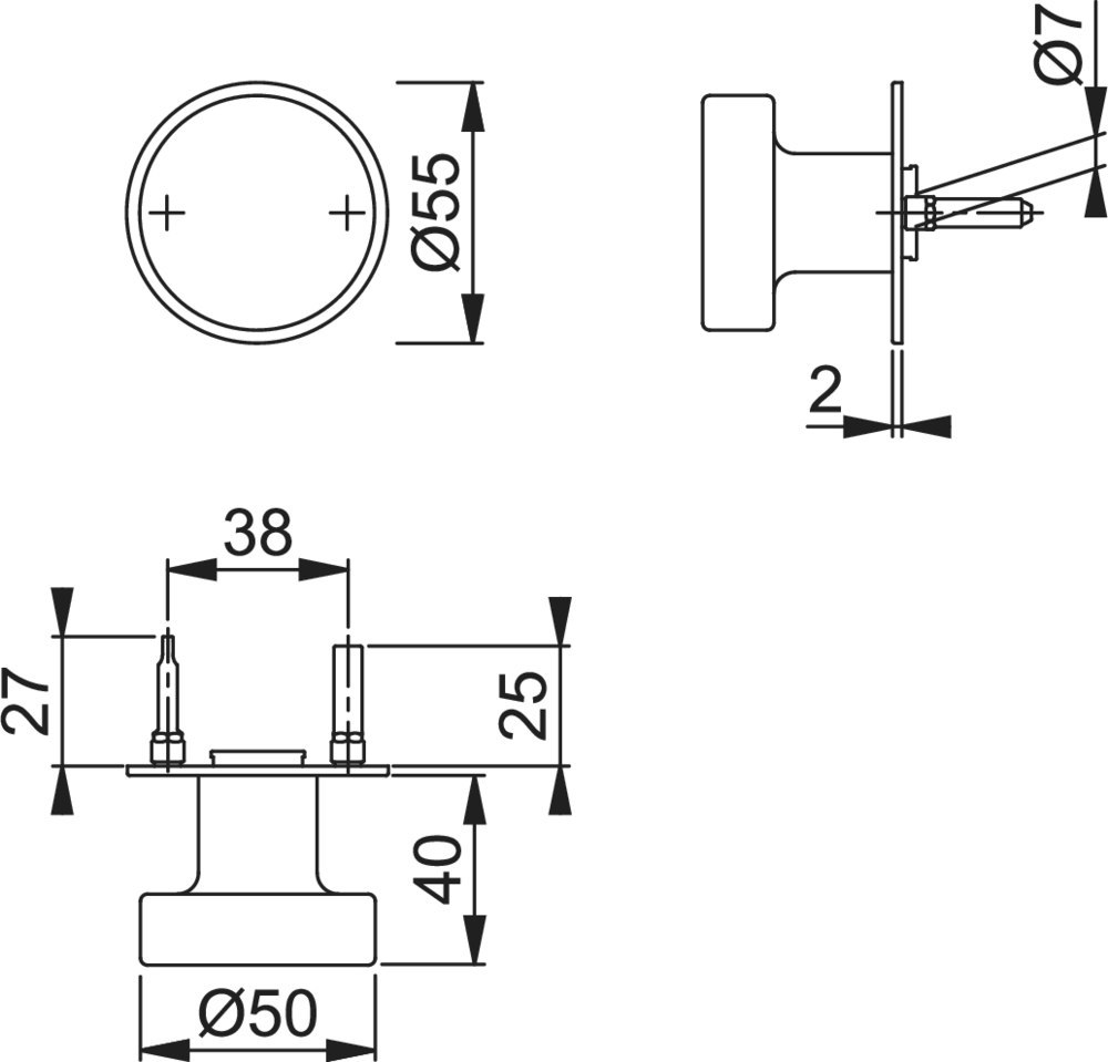 Höhe Drückerrosette (außen): 2.00 MMT