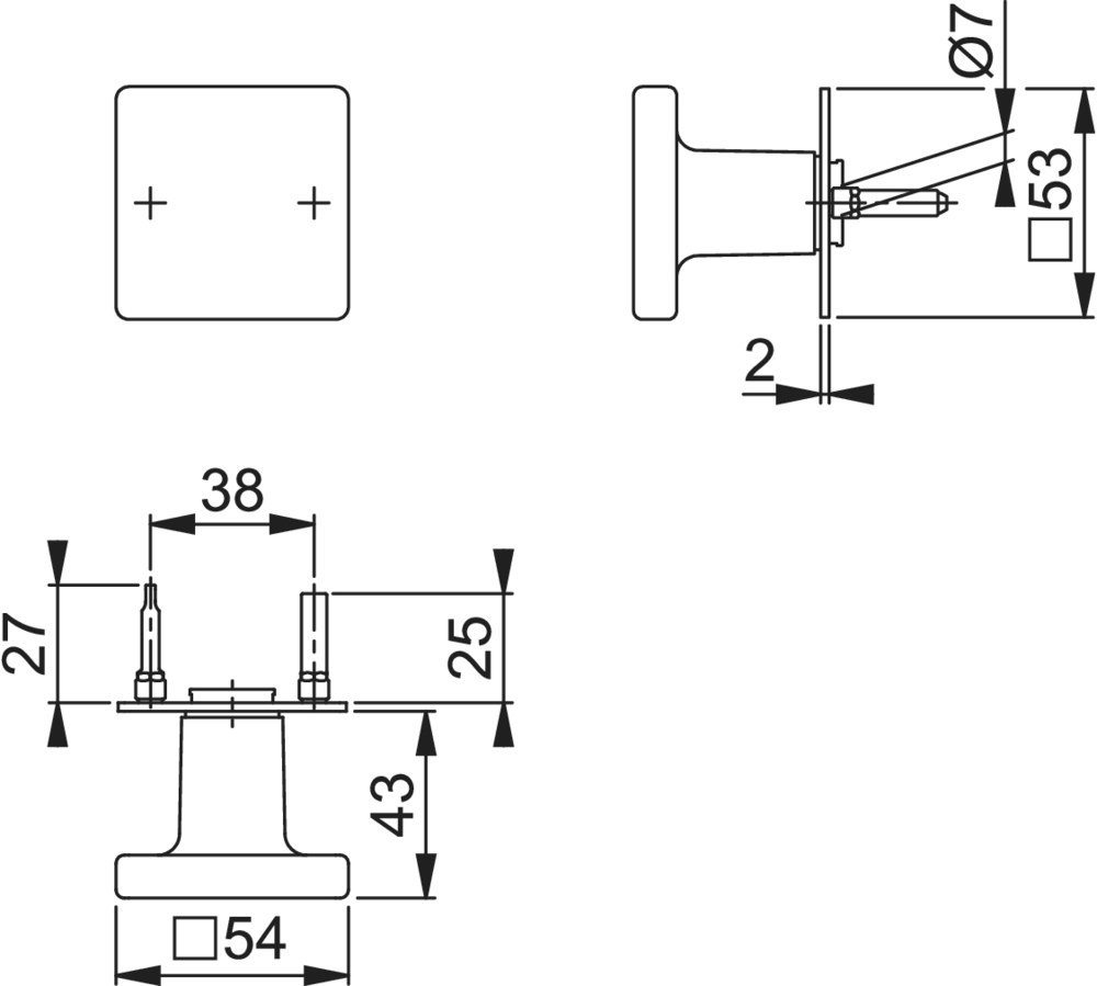 Halbgarnitur M43/848N; Produkttyp: Halbgarnitur; Produkttyp (Hersteller): Halbgarnitur; Ausführung: ohne Schlüsselrosette; Befestigungsart Drückerrosette (außen): aufsteckbar; Befestigungstechnik: mit Stütznocken; Montageart: aufliegend; Form Drückerrosette: eckig; Vierkant: 8 mm; Material: Messing; Form Türgriff (außen): Flachknopf; Ausführung Türgriff (außen): fest; Gewinde Knopf/Griffplatte: M12; Breite Türgriff (außen): 54 mm; Länge Türgriff (außen): 54 mm; Höhe Türgriff (außen): 43 mm; Breite Drückerrosette (außen): 53 mm; Länge Drückerrosette (außen): 53 mm; Höhe Drückerrosette (außen): 2 mm; Einsatzbereich: Wohnungseingangstür,Haustür; Türart: Vollblatt; Türwerkstoff: Stahl,Holz; Anwendung: außen; DIN-Richtung: DIN Links-Rechts; Farbe: mehrfarbig; Farbton: satiniert vernickelt/edelstahl matt; Ausführung Vierkant: Rollenwechselstift; Türstärke min.: 35 mm; Türstärke max.: 45 mm