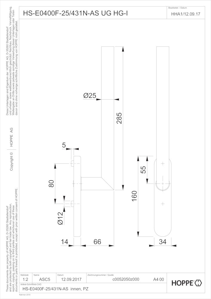 Produktinformationen "HOPPE Handhebelgarnitur Amsterdam HS-E0400F-25/431N-AS, innen, UG"