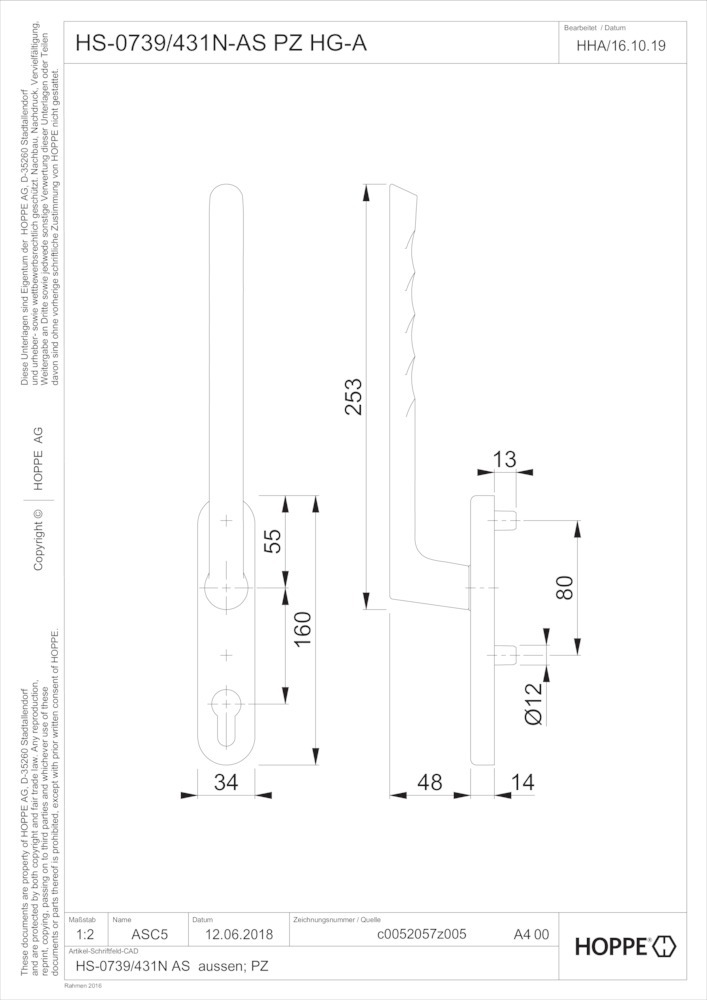Produktinformationen "HOPPE Handhebelgarnitur Brest HS-0739/431N-AS, außen, PZ"