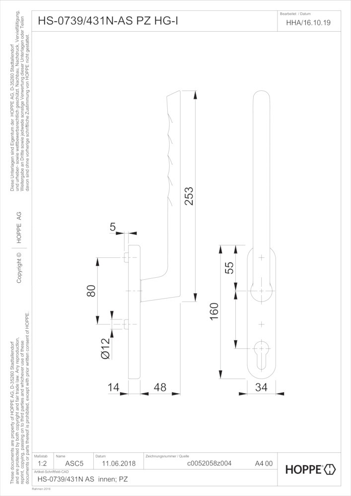 Produktinformationen "HOPPE Handhebelgarnitur Brest HS-0739/431N-AS, innen, PZ"