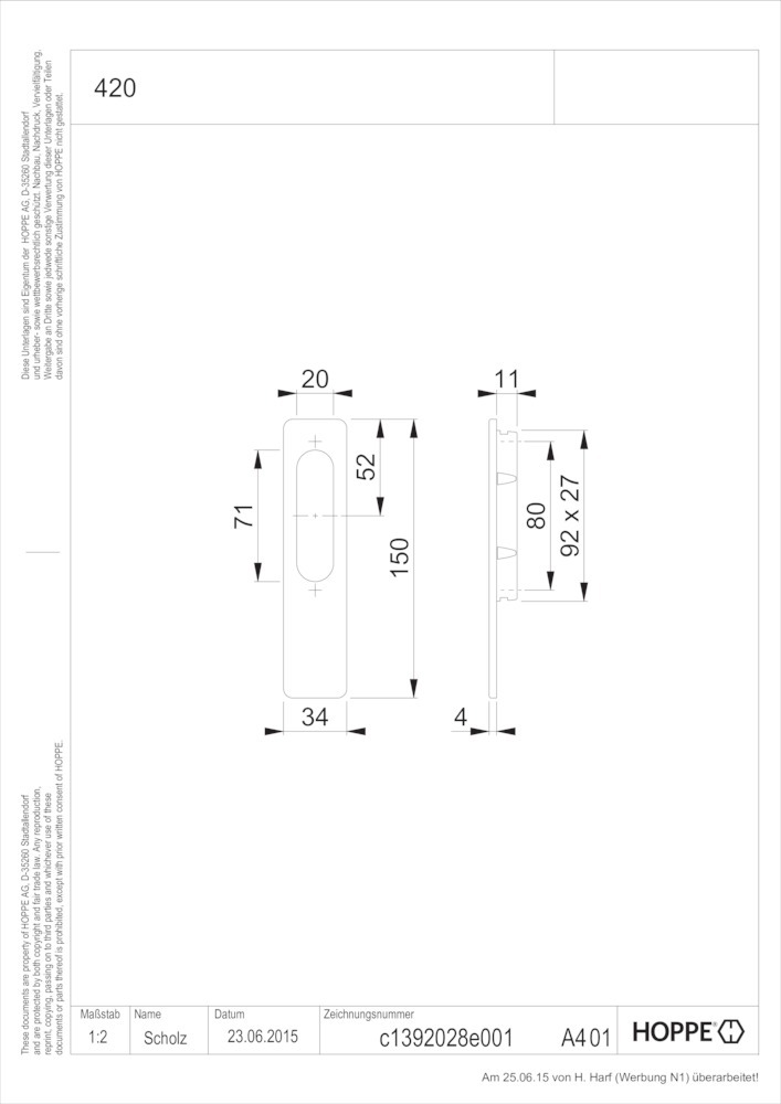 Produktinformationen "HOPPE Muschelgriff 420,150x34,flach,d.br."
