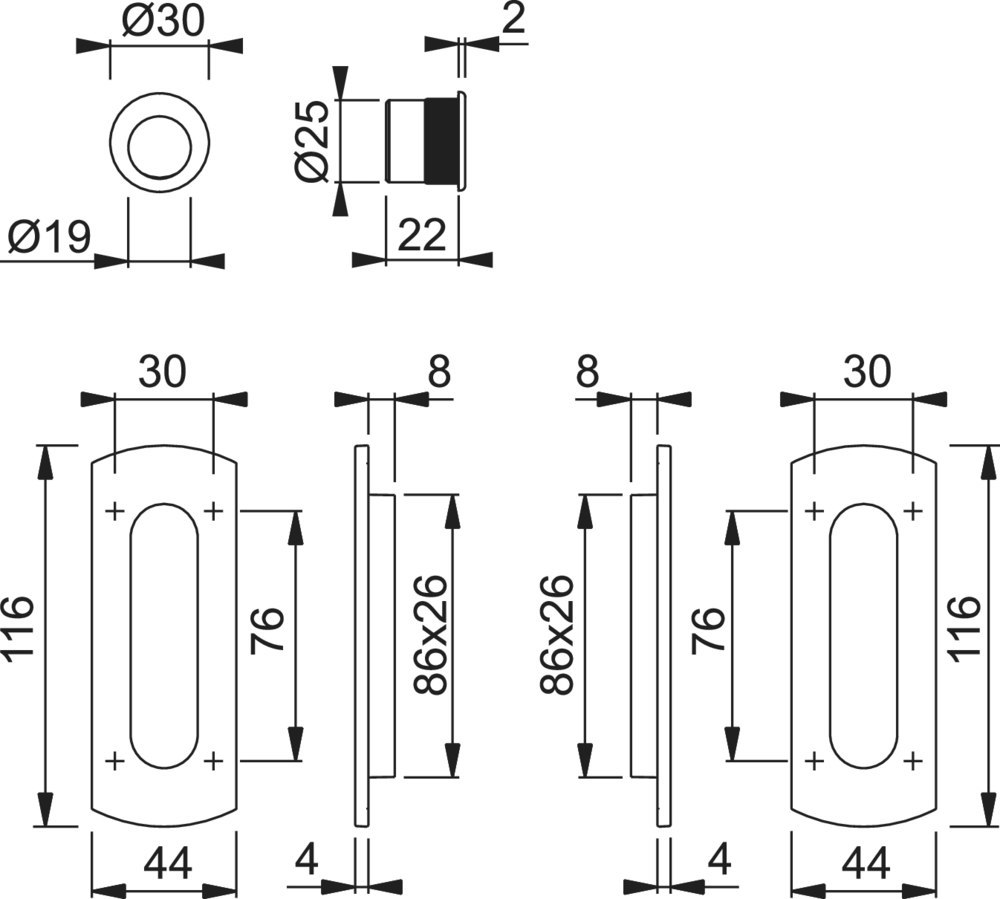 Produktinformationen "HOPPE Muschelgriff Set 5 M463,116x44,UG,F41-R"