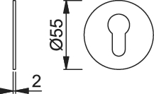 HOPPE®, Haustür-Schlüsselrosette, Lochung: Profilzylinder gelocht, Befestigungsart: selbstklebend, Modellnummer: E849S-SK, Material: Edelstahl, Farbton: edelstahl matt, Form: rund, DIN-Richtung: DIN Links-Rechts, Befestigungstechnik: ohne Stütznocken, Durchmesser: 55 mm, Stärke Abdeckung: 2 mm, Türart: Außentüren, Türwerkstoff: Holz, Stahl