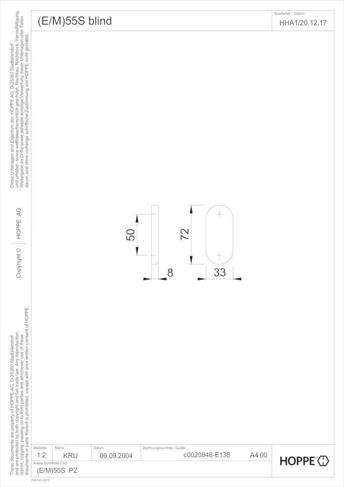Produktinformationen "HOPPE Schlüsselrosettenpaar E55S, Edelstahl"