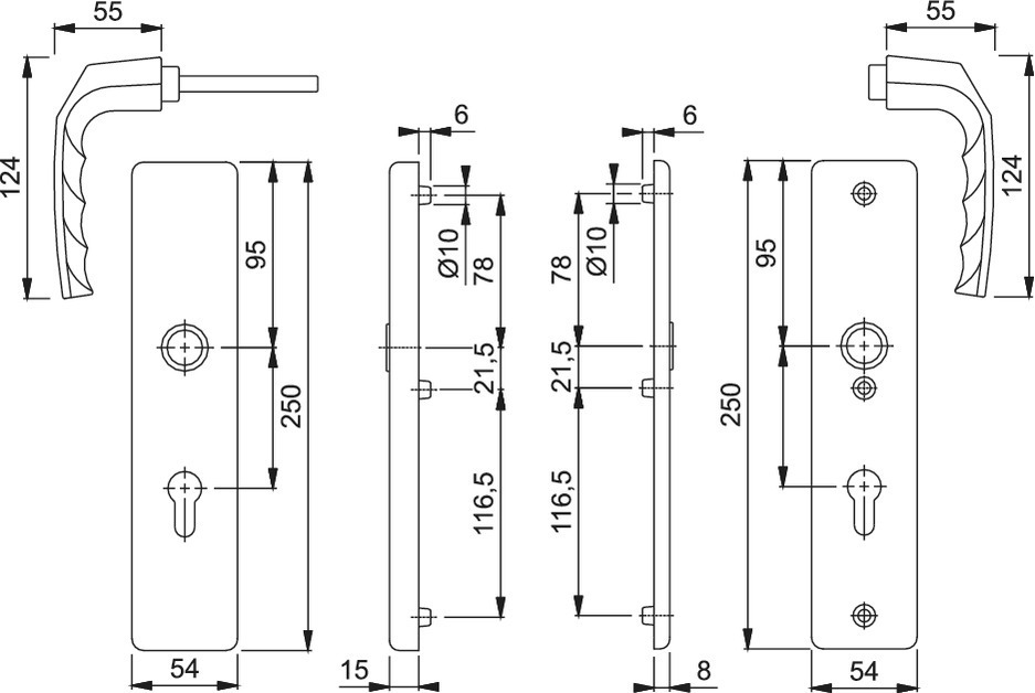 HOPPE®, Zimmertür-Schutz-Drückergarnitur, Abdeckung: Langschild, Modell: Birmingham, Modellnummer: 1117/2222A/2440, Lochung: Profilzylinder gelocht, Entfernung: 72mm, Vierkant: 8mm, Material: Aluminium, Farbton: neusilberfarbig, Oberfläche: eloxiert, DIN-Richtung: DIN Links-Rechts, Lagerung: Gleitlager, wartungsfrei, lose, Befestigungsart: innen sichtbar verschraubt, Befestigungstechnik: mit Stütznocken,Material Unterkonstruktion : Zamak, Befestigungssystem: Stiftverbindung, Breite: 54mm, Länge: 250mm, Schildstärke außen: 15mm, Schildstärke innen: 8mm, Anschlagrichtung: Drücker rechts/links verwendbar, Drückerbefestigung: Profilstift,Drückerform : gerade, Drückerlänge: 124 mm, Drückerhöhe: 55 mm, Form: eckig, Türstärke min.: 37mm, Türstärke max.: 42mm, Türart: Außentüren,Türwerkstoff : Holz, Stahl, Prüfung: RAL-GZ 607/6, Widerstandsklasse: ES 0 (SK1), Norm: DIN 18257
