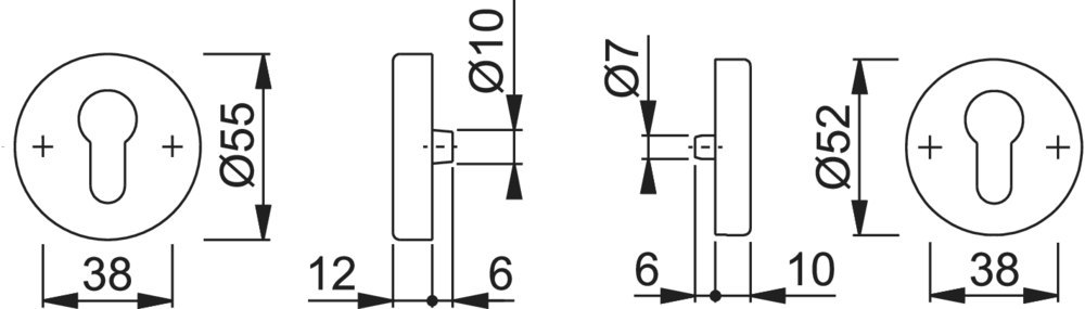 Produktinformationen "HOPPE Schutzrosette E42NSA/42HS,rund,12mm,ES1/PZ,F69,TS57-62"