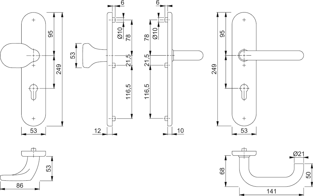 | Drückerbefestigung: | Wechselstift mit Rolle |
