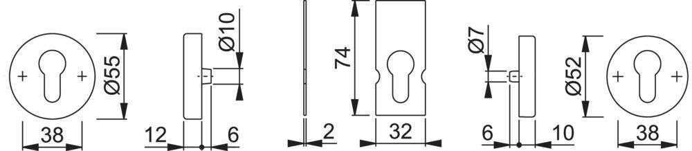 Produktinformationen "HOPPE Schutzrosette 42NSA/42HS,rund,12mm,ES1/PZ,F1 elox.,TS57-62"