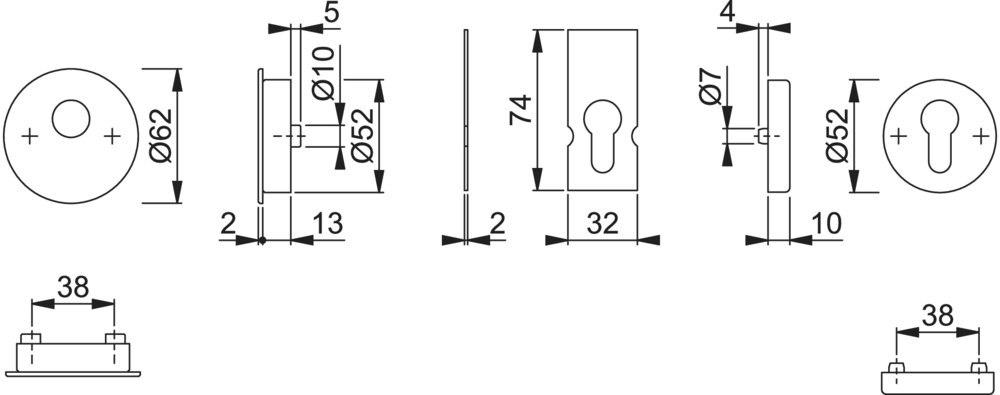 Produktinformationen "HOPPE Schutzrosette E29NSB/42HS,rund/flach,2mm,ES 1/PZ,F69,TS65-75,m.Zusatzros."