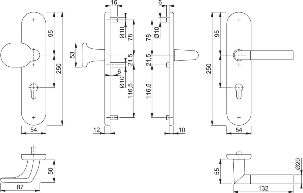 Sicherheits-Wechselgarnitur Lecce 86G/3331/3310/1405; Produkttyp: Sicherheits-Wechselgarnitur; Produkttyp (Hersteller): Sicherheits-Wechselgarnitur; Ausführung: Langschild; Form: oval; Material: Aluminium; Form Türgriff (innen): Gehrung; Form Türgriff (außen): gekröpft; Ausführung Türgriff (außen): fest; Gewinde Knopf/Griffplatte: M12; Länge Türgriff (innen): 132 mm; Länge Türgriff (außen): 53 mm; Breite Türgriff (außen): 87 mm; Höhe Türgriff (innen): 54 mm; Höhe Türgriff (außen): 50 mm; Durchmesser Türgriff (innen): 20 mm; Material Unterkonstruktion (innen): Zamak; Material Unterkonstruktion (außen): Stahl; Gütesiegel: RAL-GZ; Einsatzbereich: Wohnungseingangstür; Türart: Vollblatt; Türwerkstoff: Holz,Stahl; Zylinderabdeckung: ohne Zylinderabdeckung; DIN-Richtung: DIN Links-Rechts; Widerstandsklasse nach DIN 18257: ES 1; Vierkant: 8 mm; Entfernung: 72 mm; Lochung: Profilzylinder gelocht; Ausführung Vierkant: Rollenwechselstift; Farbe: grau; Farbton: stahlfarbig matt; Oberfläche: eloxiert; Schildlänge außen: 250 mm; Schildlänge innen: 250 mm; Schildbreite außen: 54 mm; Schildbreite innen: 54 mm; Schildstärke innen: 10 mm; Schildstärke außen: 12 mm; Türstärke min.: 37 mm; Türstärke max.: 42 mm; Norm: DIN 18257,DIN EN 1906