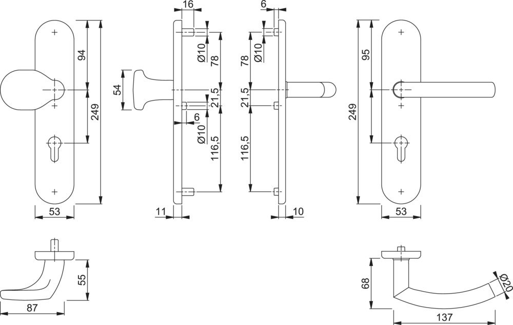 Sicherheits-Wechselgarnitur Trondheim E86G/3331/3310/1430Z; Produkttyp: Sicherheits-Wechselgarnitur; Produkttyp (Hersteller): Sicherheits-Wechselgarnitur; Ausführung: Langschild; Form: oval; Material: Edelstahl; Form Türgriff (innen): gebogen,Gehrung; Form Türgriff (außen): gekröpft; Ausführung Türgriff (außen): fest; Gewinde Knopf/Griffplatte: M12; Länge Türgriff (innen): 138 mm; Länge Türgriff (außen): 53 mm; Breite Türgriff (außen): 87 mm; Höhe Türgriff (innen): 68 mm; Höhe Türgriff (außen): 53 mm; Durchmesser Türgriff (innen): 21 mm; Material Unterkonstruktion (innen): Zamak; Material Unterkonstruktion (außen): Stahl; Einsatzbereich: Wohnungseingangstür; Türart: Vollblatt; Türwerkstoff: Stahl,Holz; Zylinderabdeckung: ohne Zylinderabdeckung; DIN-Richtung: DIN Links-Rechts; Widerstandsklasse nach DIN 18257: ES 1; Vierkant: 8 mm; Entfernung: 72 mm; Lochung: Profilzylinder gelocht; Ausführung Vierkant: Rollenwechselstift; Farbe: grau; Farbton: edelstahl matt; Oberfläche: matt; Schildlänge außen: 249 mm; Schildlänge innen: 249 mm; Schildbreite außen: 53 mm; Schildbreite innen: 53 mm; Schildstärke innen: 10 mm; Schildstärke außen: 12 mm; Türstärke min.: 42 mm; Türstärke max.: 47 mm; Norm: DIN 18257,DIN EN 1906; EN 1906 - Gebrauchskategorie: Klasse 3; EN 1906 - Korrosionsbeständigkeit: Klasse 4; Klassifizierungsschlüssel EN 1906: 37-0142A