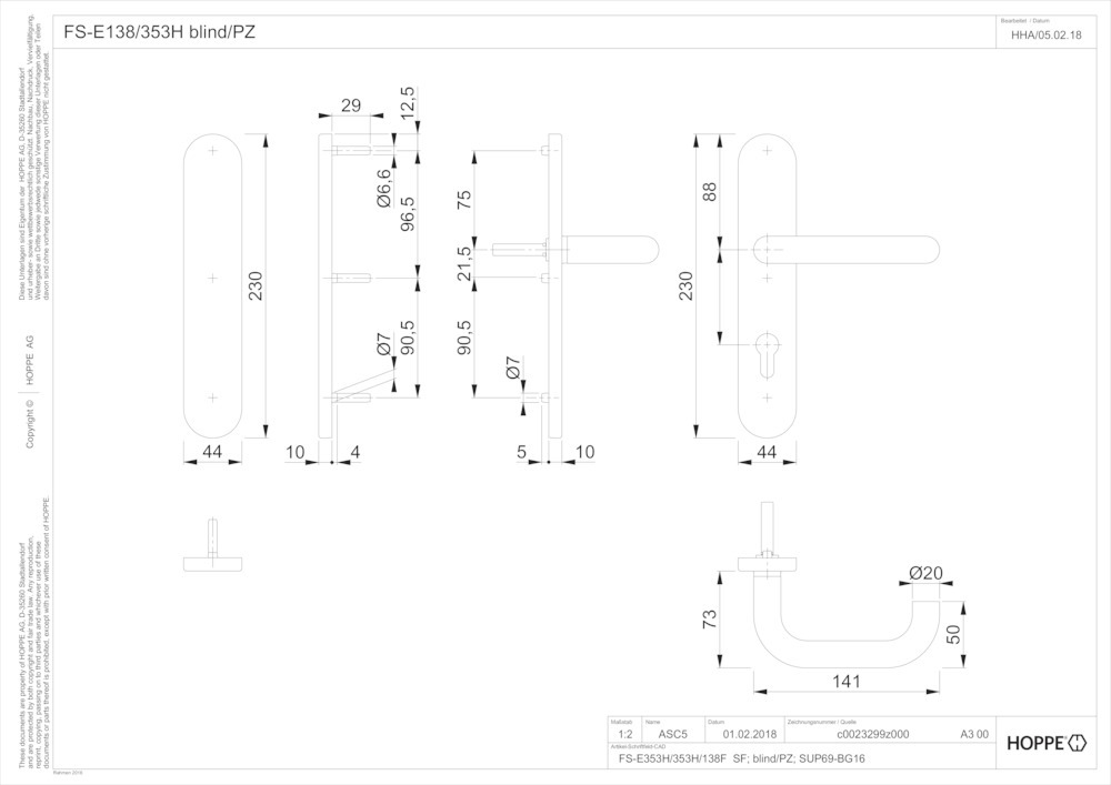 Produktinformationen "HOPPE Standflügelgarnitur Paris FS-E138/353H, LS,BL/PZ72/9,F69,TS 40-65"