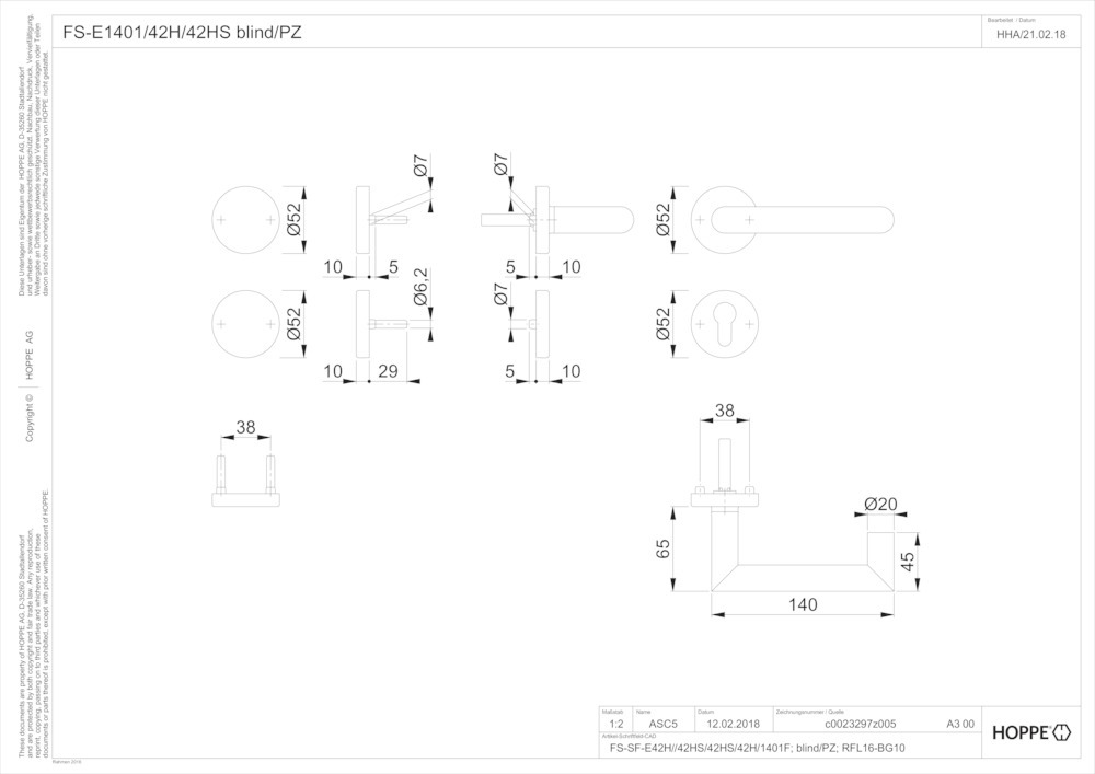 Produktinformationen "HOPPE Standflügelgarnitur Rotterdam FS-E1401/42H/42HS,BL/PZ,9,F69,TS 40-65"