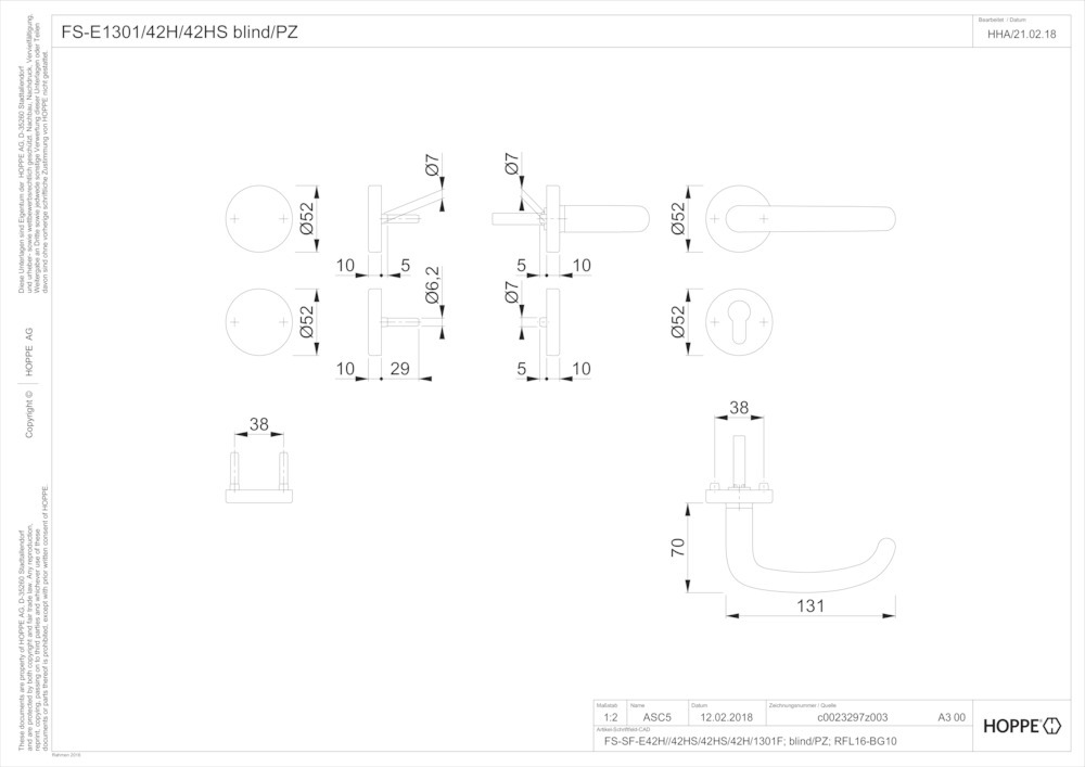 Produktinformationen "HOPPE Standflügelgarnitur San Francisco FS-E1301/42H/42HS,BL/PZ,9,F69,TS 40-65"